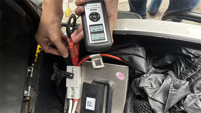除了政策宣讲与常识普及,活动最受居民欢迎的当属免费蓄电池检测服务。技术人员借助专业检测设备,为有需求的车主逐一进行电池健康状态检测,精准排查潜在安全隐患,并根据检测结果给出针对性的维护建议和更换提醒。
